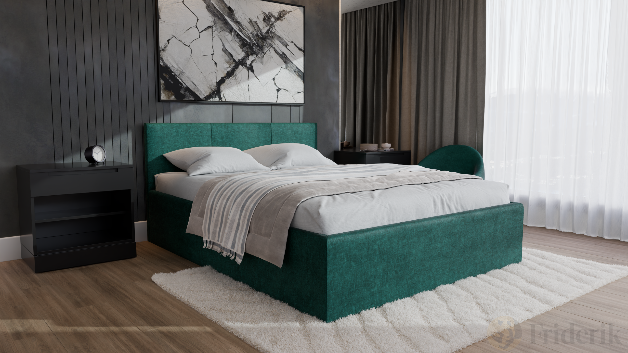 Polsterbett Dona 160x200 cm – modernes Doppelbett mit Bettkasten & gepolstertem Kopfteil - Flaschengrün (Noble 37)