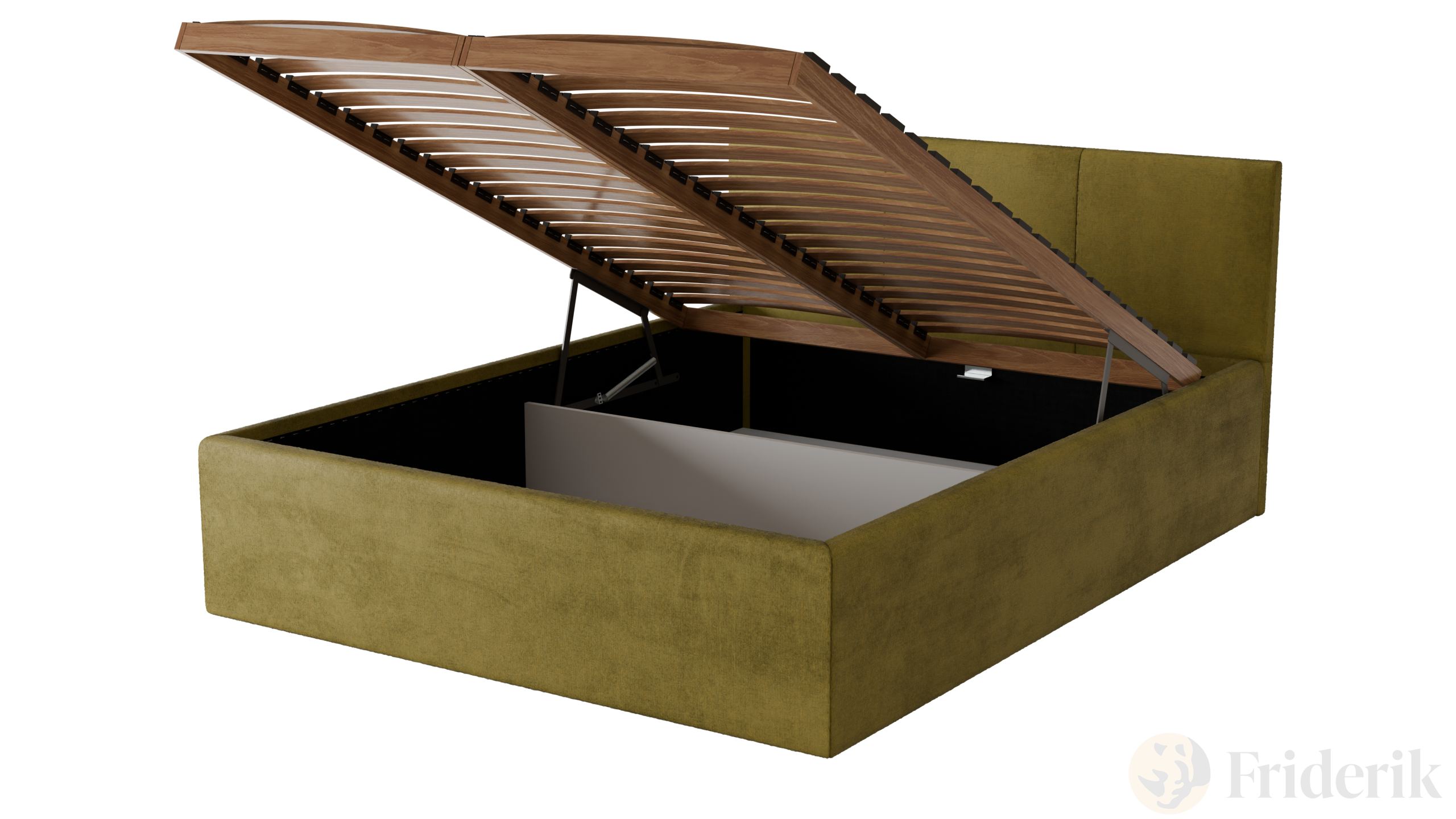 Polsterbett Dona 160x200 cm – modernes Doppelbett mit Bettkasten & gepolstertem Kopfteil - Olive (Noble 38)