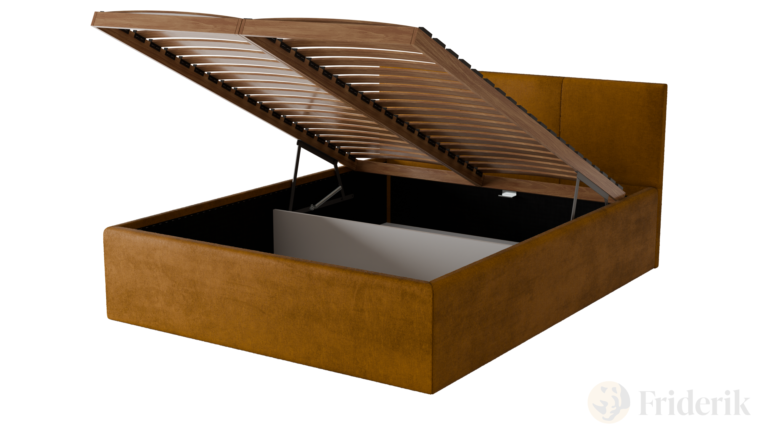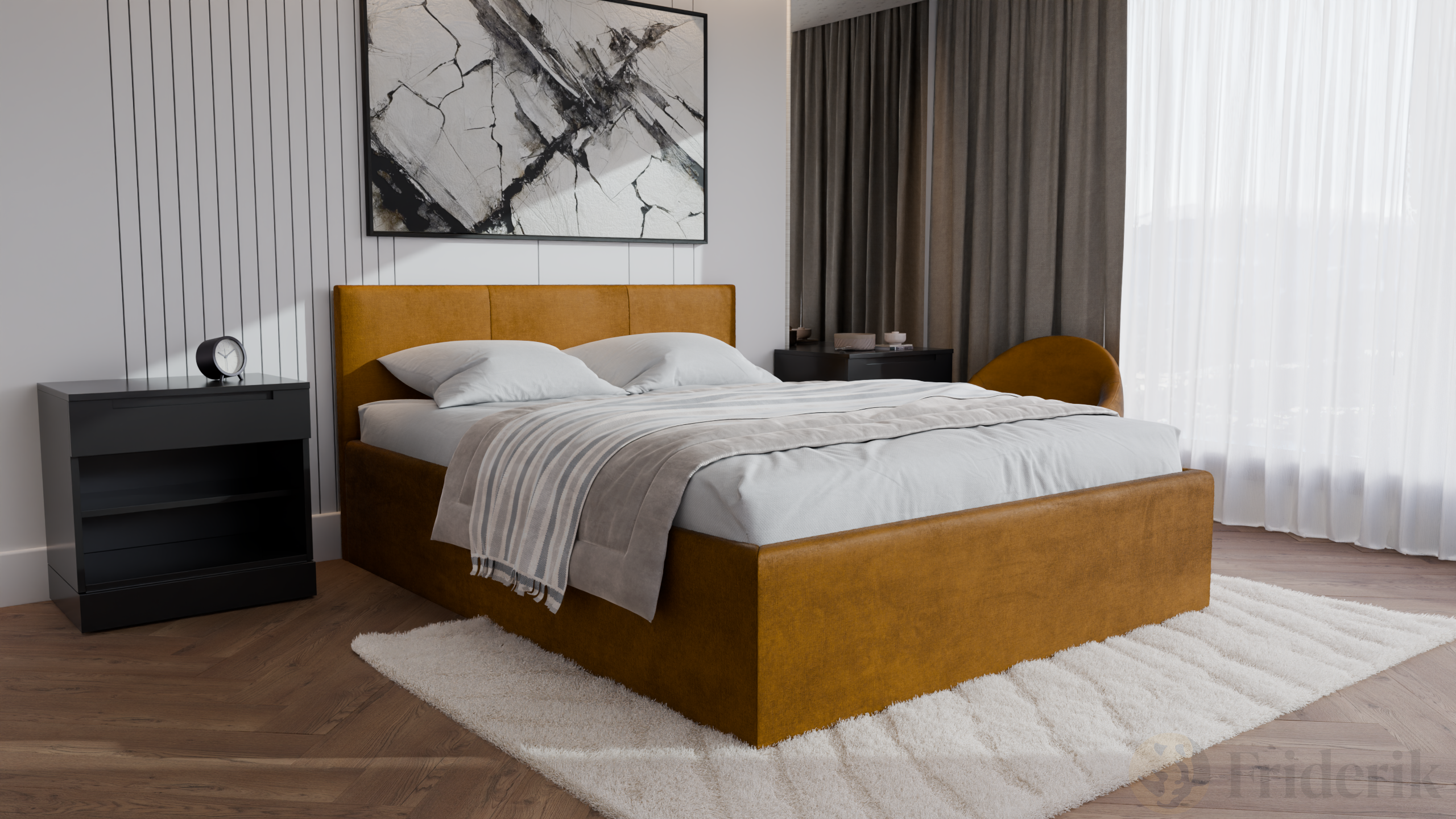 Polsterbett Dona 160x200 cm – modernes Doppelbett mit Bettkasten & gepolstertem Kopfteil - Senf (Noble 48)