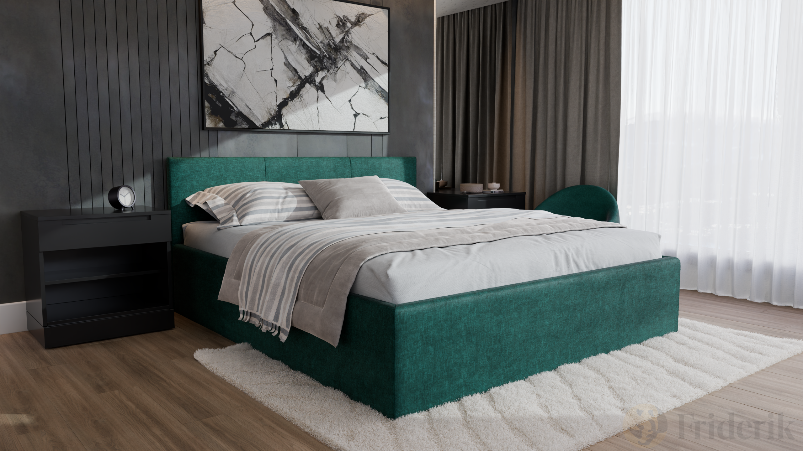 Dein Schlafzimmer ist ein Ort der Ruhe, an dem jedes Detail zählt. Das Polsterbett Dona 180x200 cm wurde entwickelt, um modernes Design mit praktischen Funktionen zu vereinen. Ein eleganter, gepolsterter Bezug, das gesteppte Kopfteil und der integrierte Bettkasten sorgen nicht nur für erholsamen Schlaf, sondern auch für Ordnung und Harmonie im Raum. Dieses Bett verleiht deinem Zuhause Charakter und macht die täglichen Entspannungsmomente noch schöner.