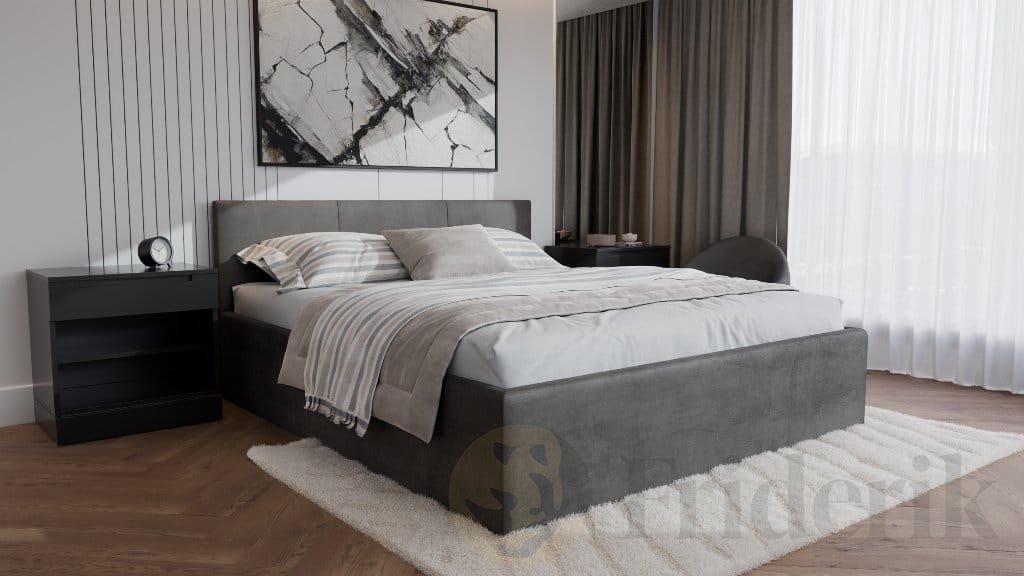 Dein Schlafzimmer ist ein Ort der Ruhe, an dem jedes Detail zählt. Das Polsterbett Dona 180x200 cm wurde entwickelt, um modernes Design mit praktischen Funktionen zu vereinen. Ein eleganter, gepolsterter Bezug, das gesteppte Kopfteil und der integrierte Bettkasten sorgen nicht nur für erholsamen Schlaf, sondern auch für Ordnung und Harmonie im Raum. Dieses Bett verleiht deinem Zuhause Charakter und macht die täglichen Entspannungsmomente noch schöner.