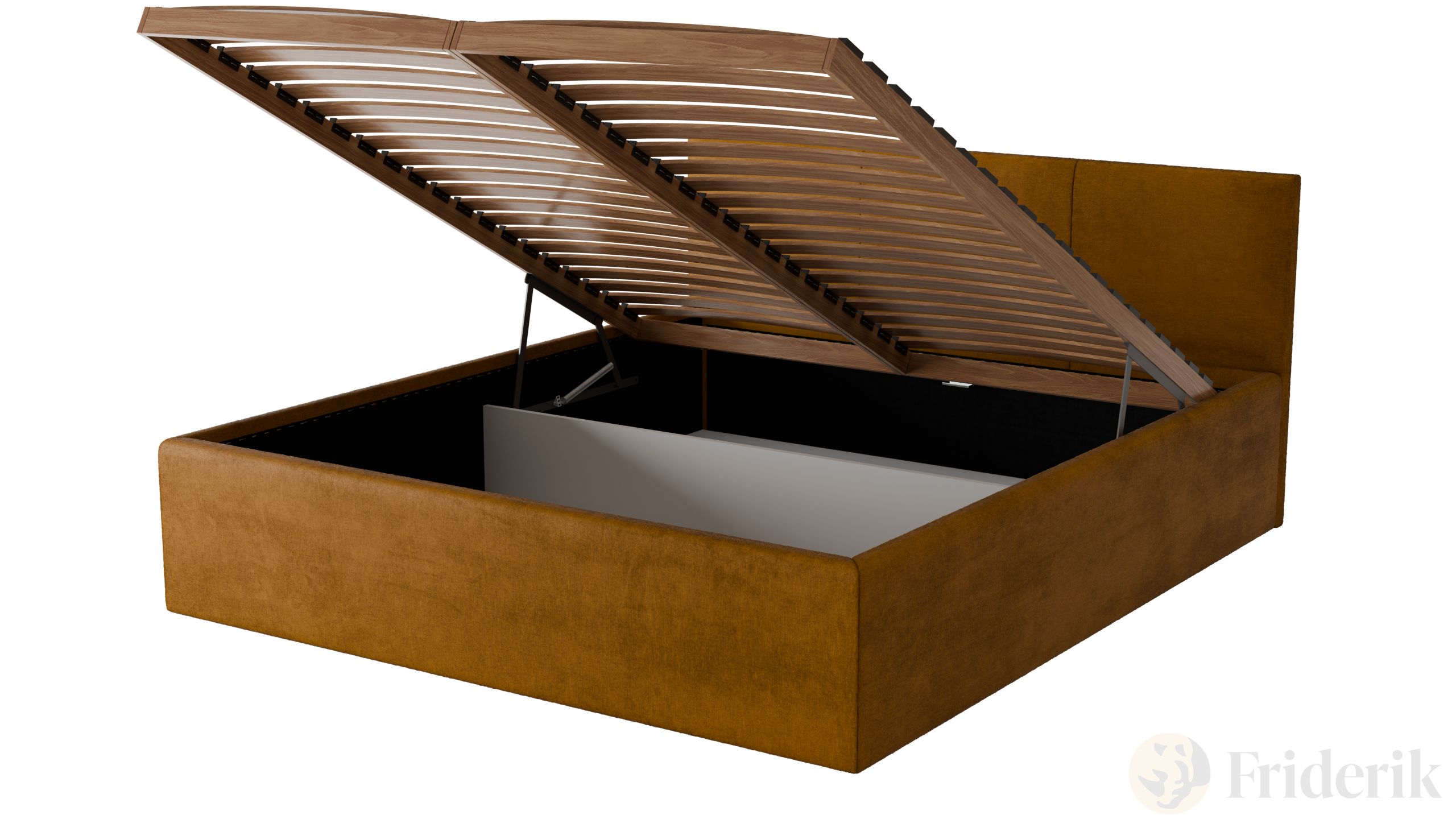 Polsterbett Dona 180x200 cm – modernes Doppelbett mit Bettkasten & gepolstertem Kopfteil - Senf (Noble 48)