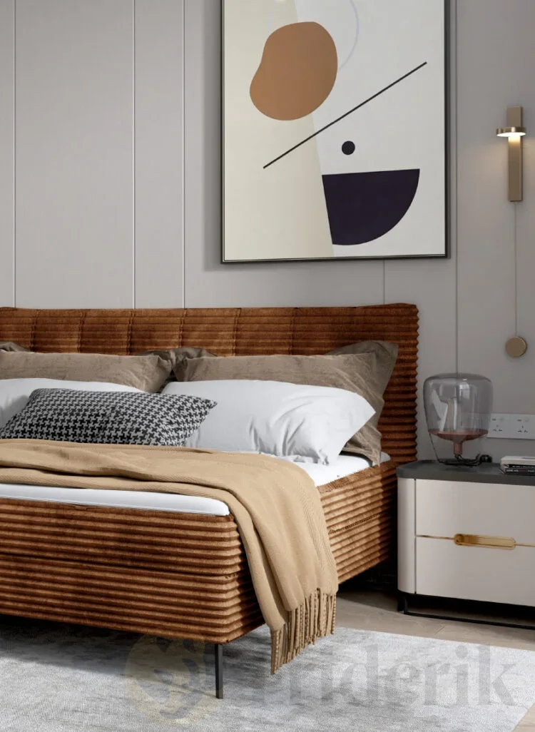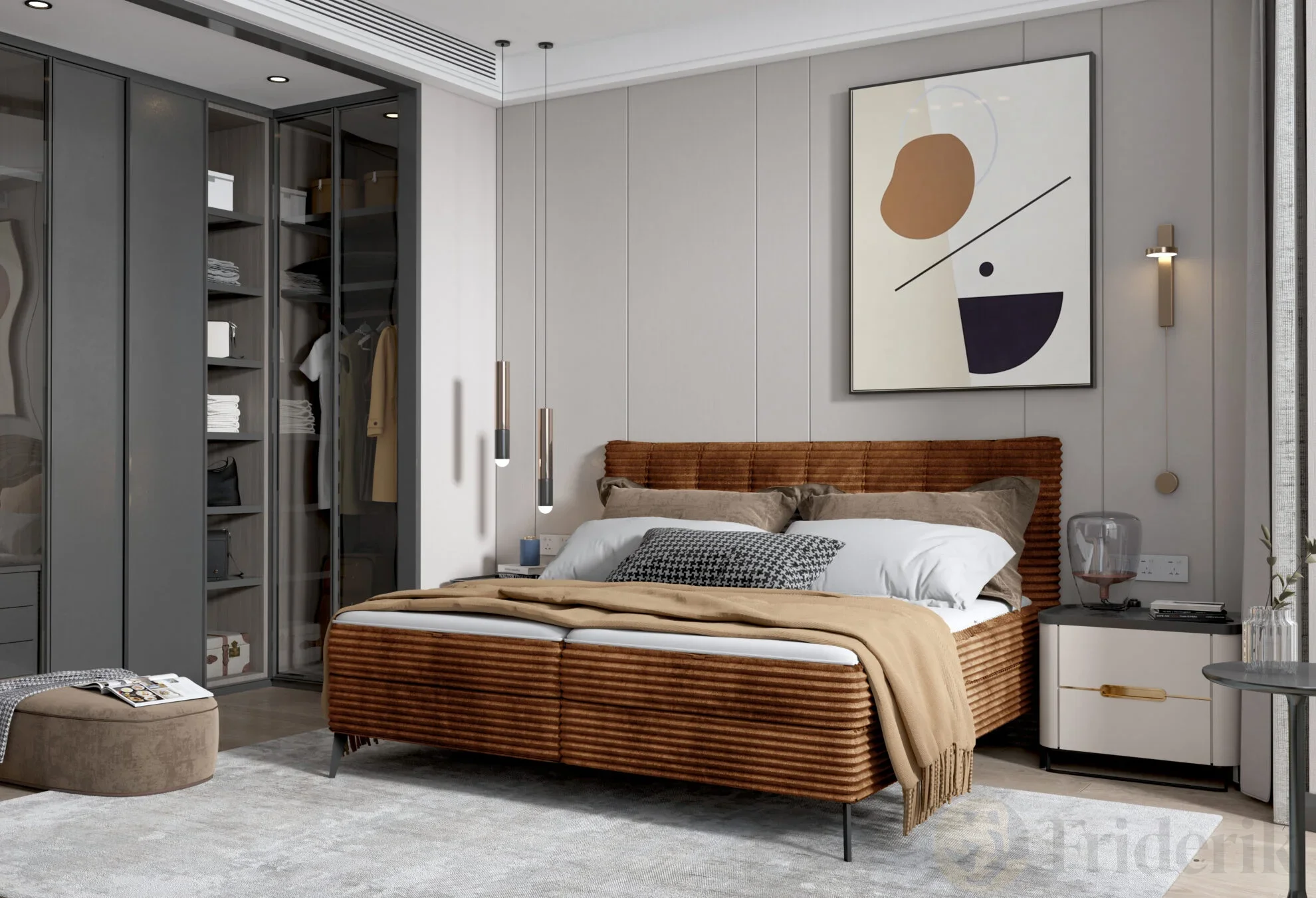 Das Polsterbett Martina vereint modernes Design mit durchdachter Funktionalität und wird schnell zum Herzstück Ihres Schlafzimmers. Der charakteristische, auf Metallstützen platzierte Kopfteil verleiht dem Bett eine visuelle Leichtigkeit und sorgt gleichzeitig für einen einzigartigen, eleganten Look.