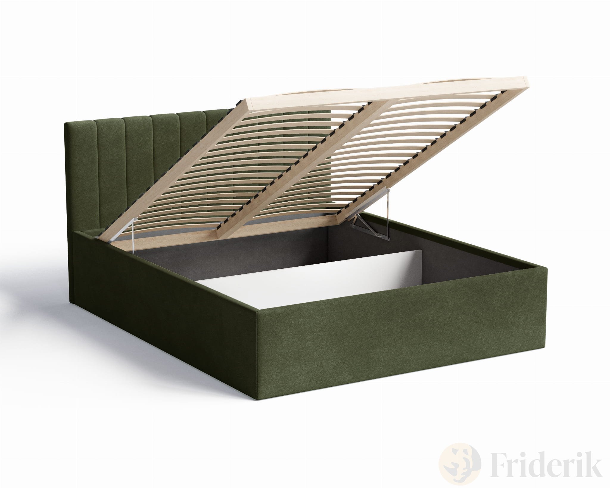 Polsterbett RETTAN 160x200 cm – modernes Doppelbett mit Bettkasten & gepolstertem Kopfteil - Olive (Noble 38)