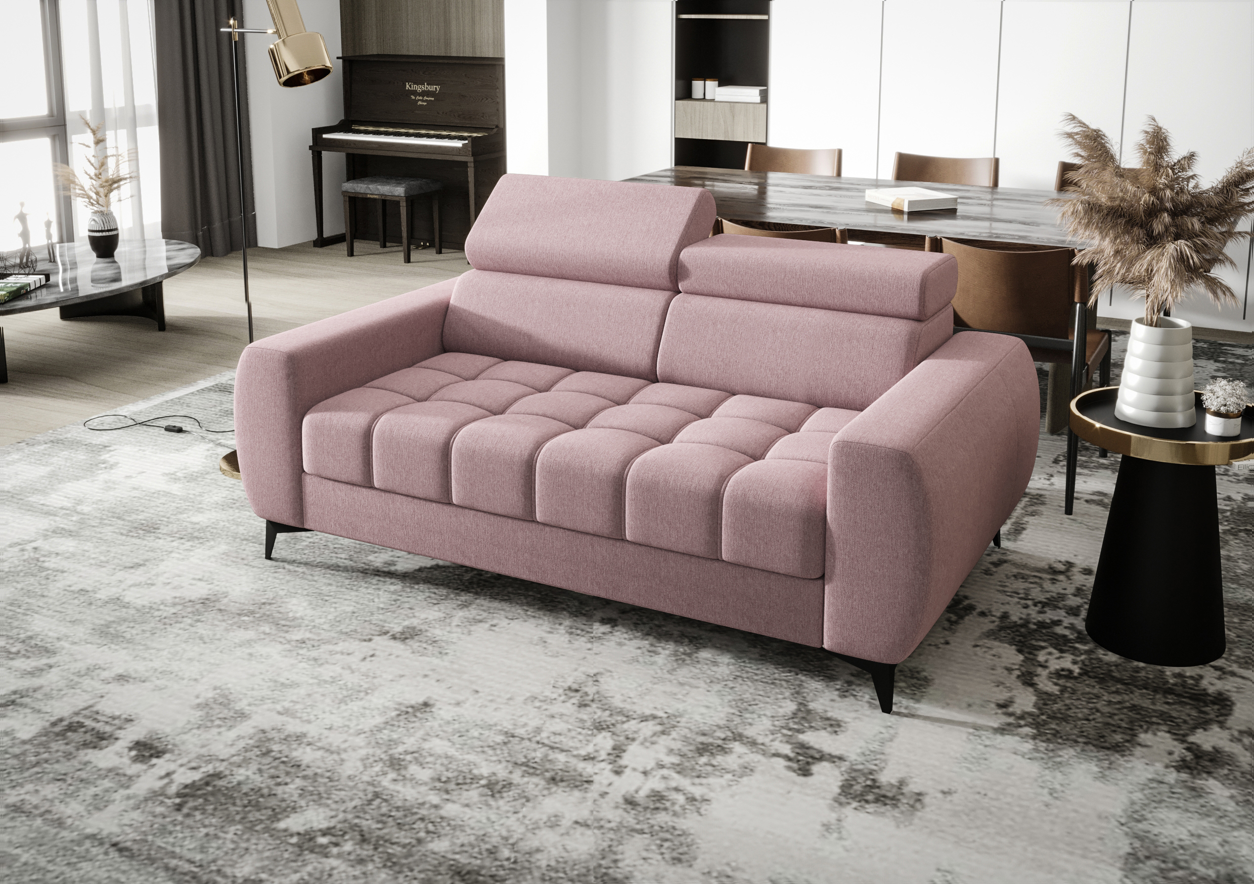 Porto II Sofa – moderne Eckcouch mit verstellbaren Kopfstützen, T35 & HR Schaum, Chenillestoff Gemma 60 - Rosa