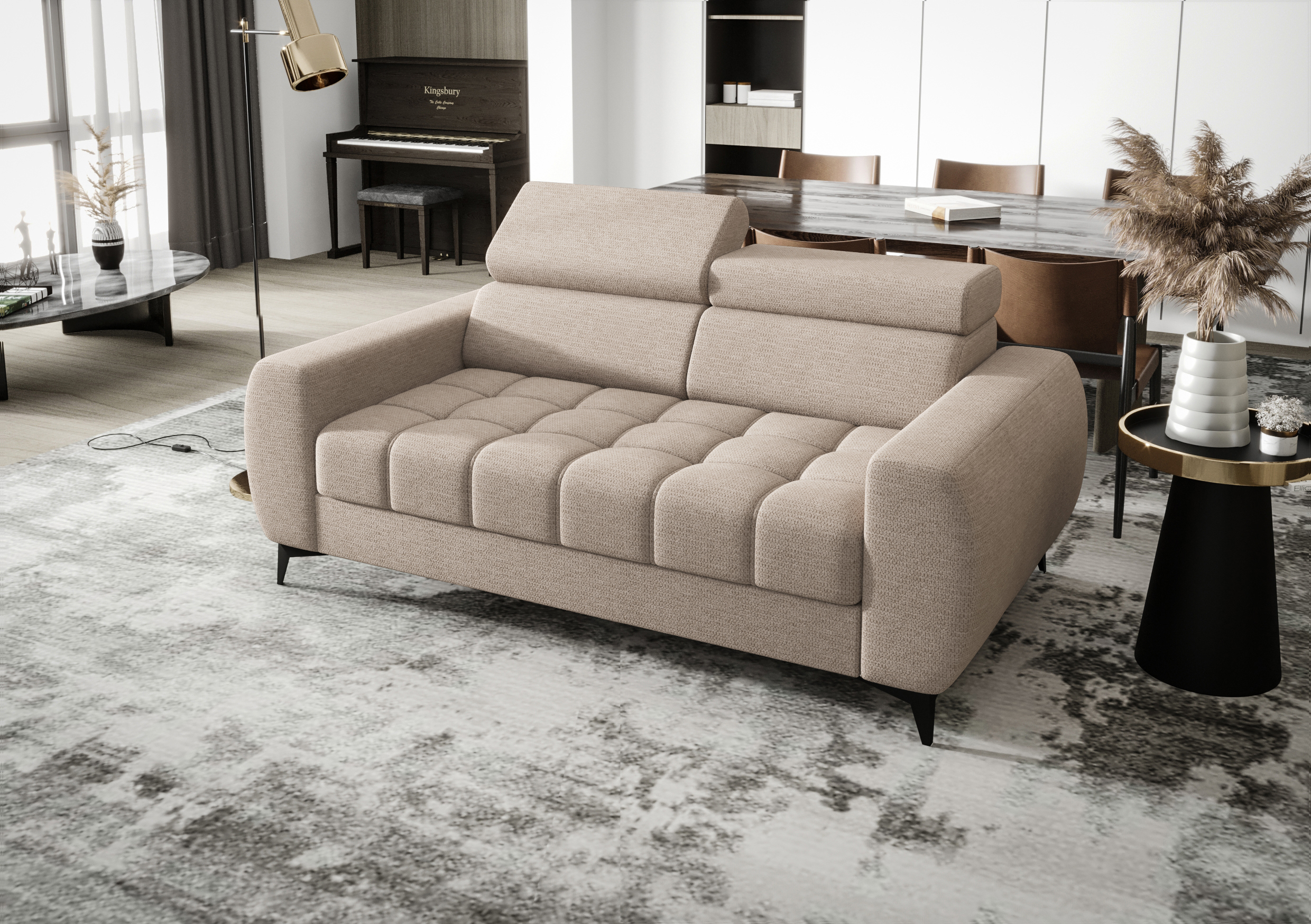Porto II ist die perfekte Kombination aus modernem Design und funktionaler Eleganz. Die minimalistische Form passt zu verschiedensten Wohnstilen und verleiht jedem Raum einen stilvollen Akzent. Dank stabiler Konstruktion und hochwertiger Verarbeitung ist dieses Sofa der ideale Rückzugsort nach einem langen Tag.