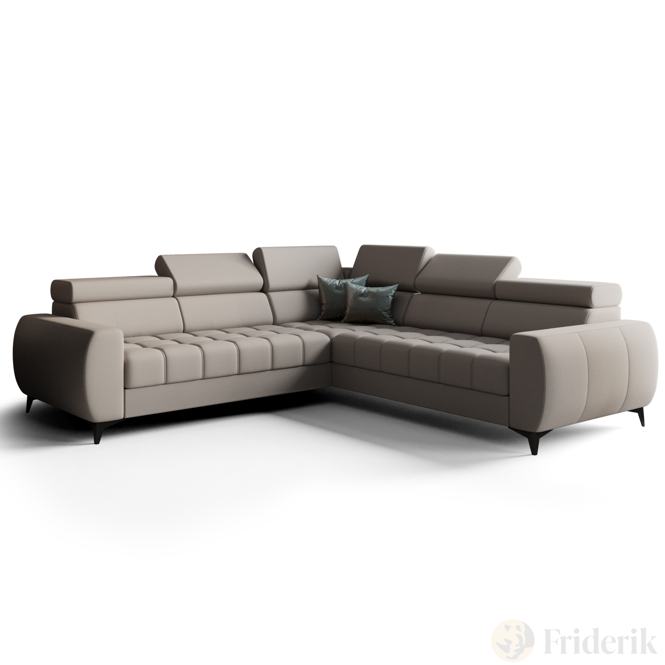 Porto Max 255x255 cm – Ecksofa mit Schlaffunktion und Bettkasten, Hochwertiger HR- & T35-Schaum, Regulierbare Kopfstützen - Echtleder L-11 - Grau