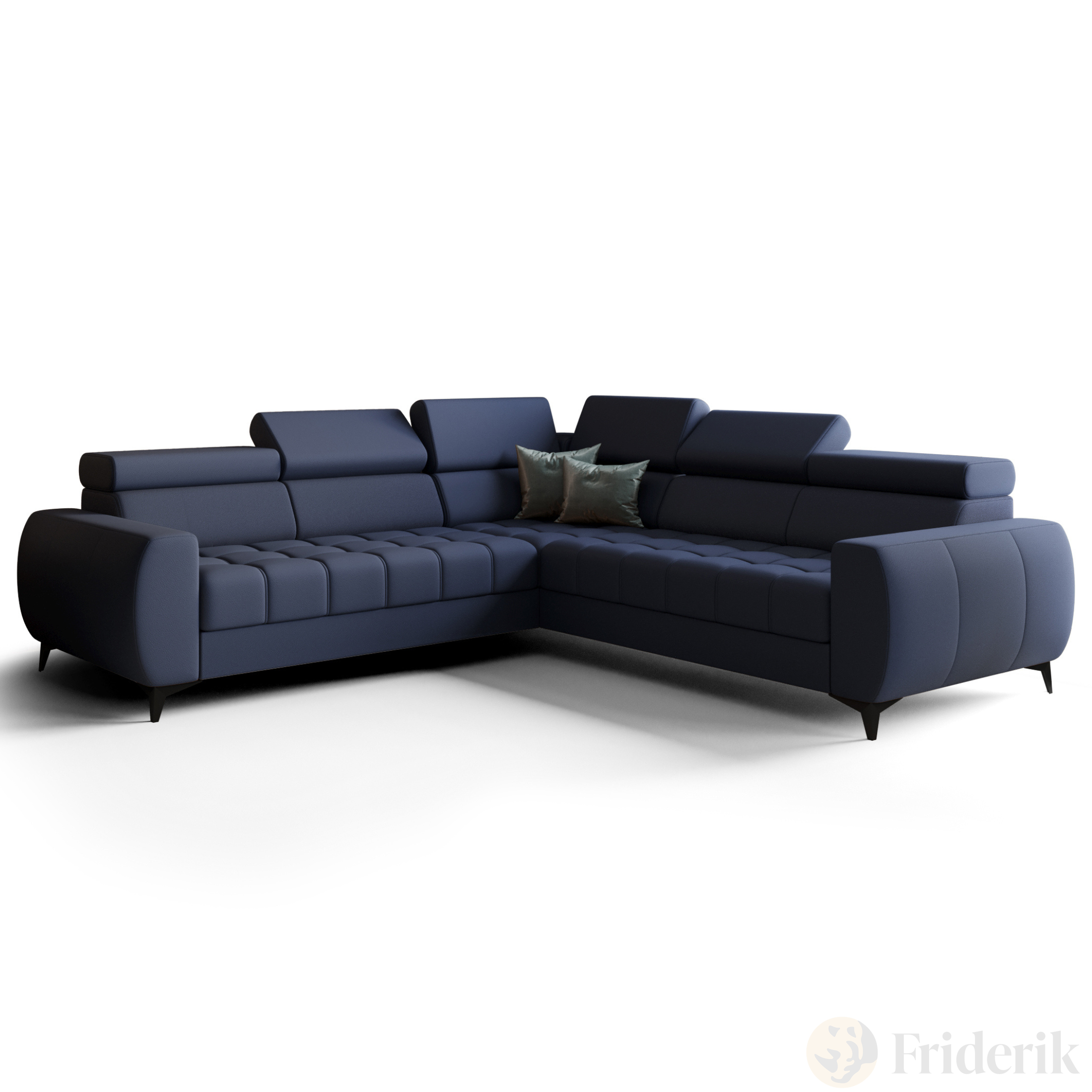 Porto Max 255x255 cm – Ecksofa mit Schlaffunktion und Bettkasten, Hochwertiger HR- & T35-Schaum, Regulierbare Kopfstützen - Echtleder L-4 - Blau