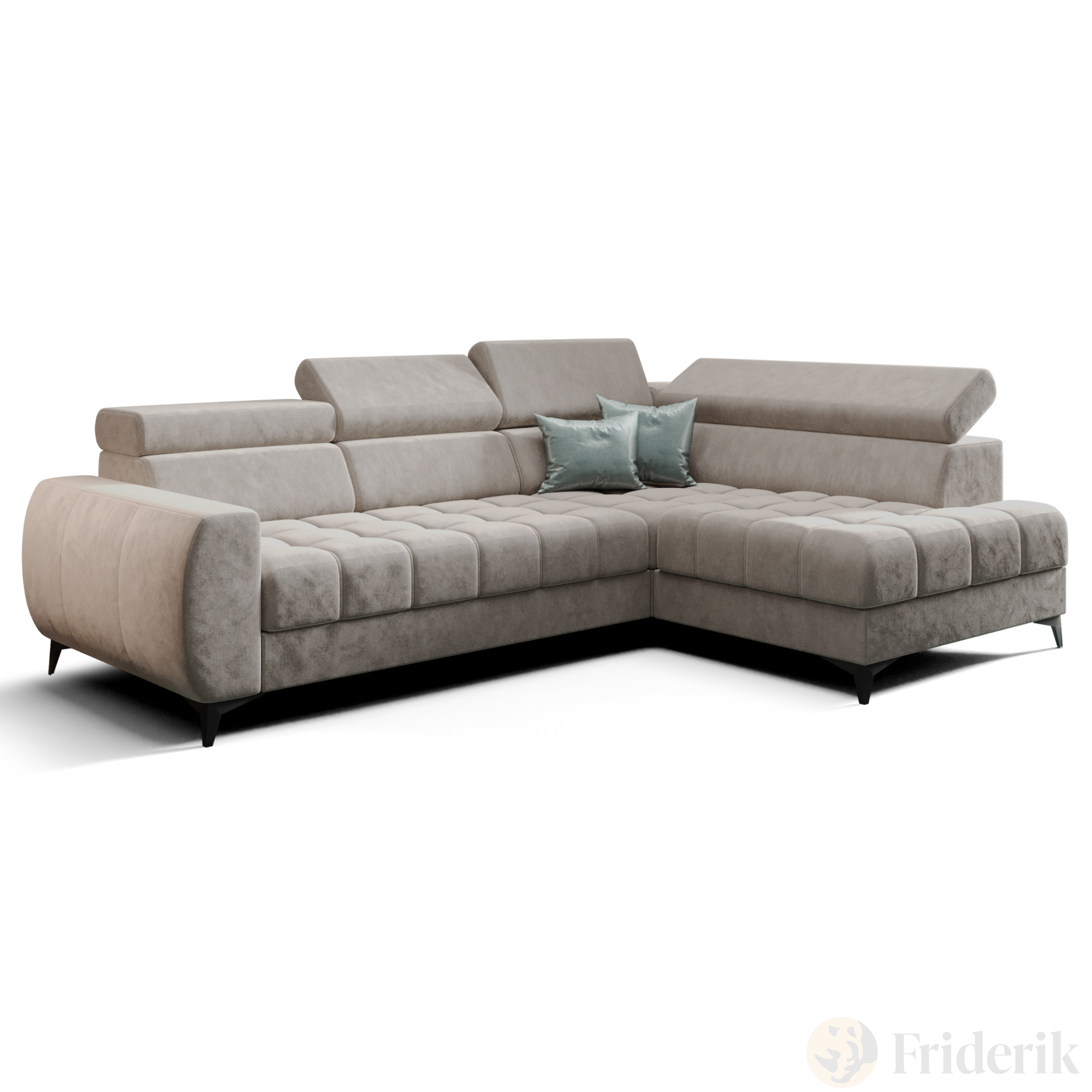 Porto Mini Ecksofa mit Schlaffunktion, verstellbaren Kopfstützen und Bettkasten – Terra 13, Beige