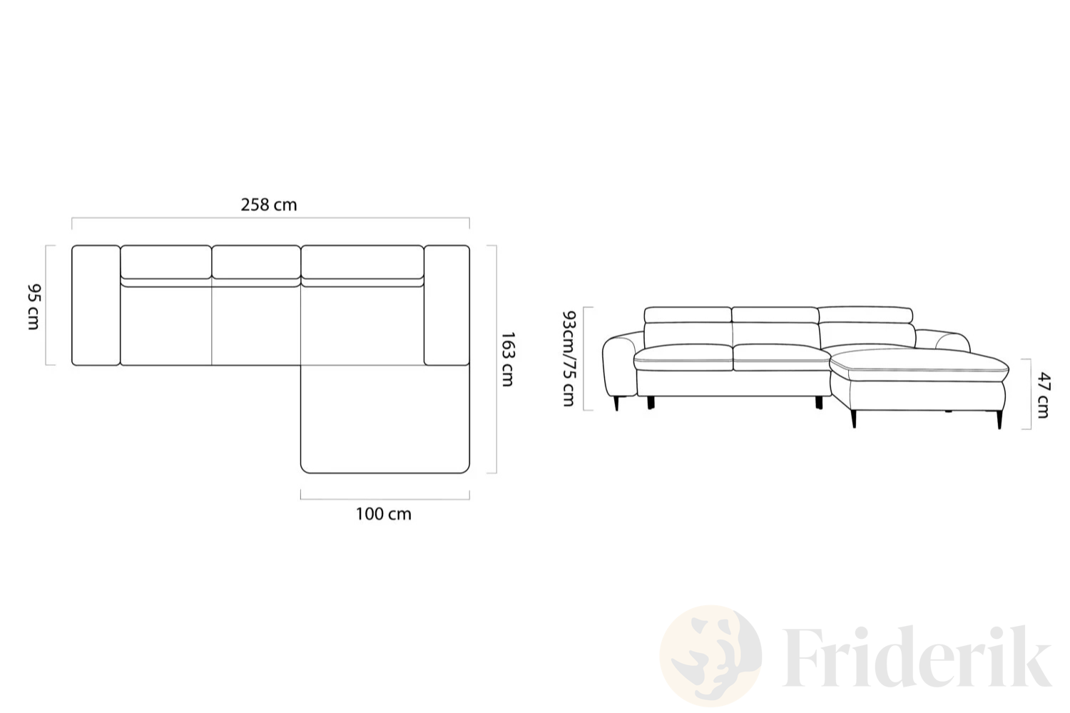 - Gesamtlänge: 258 cm