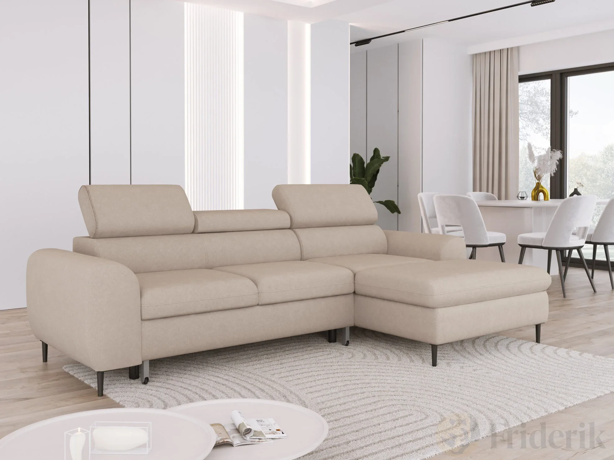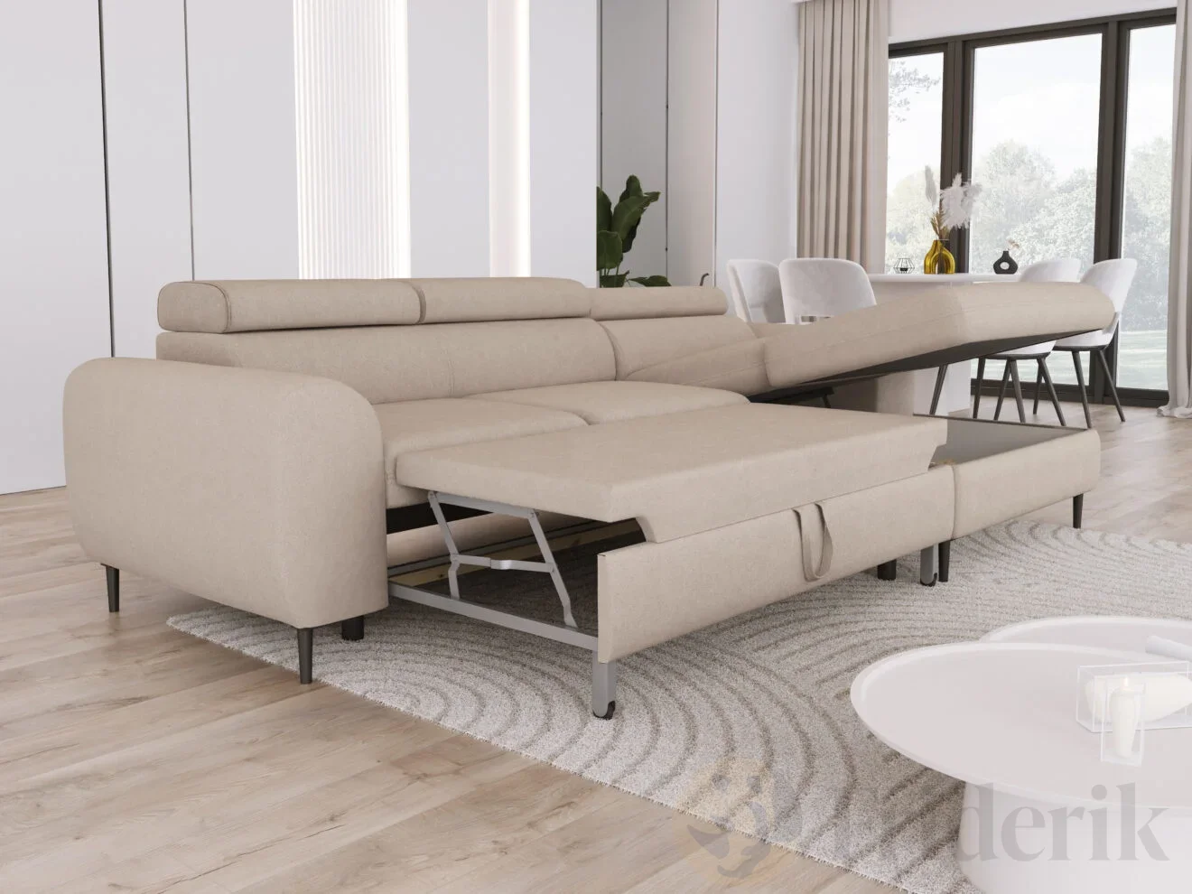 Träumen Sie von einem Ecksofa, das nicht nur stilvoll aussieht, sondern auch Ihren Alltag erleichtert? RAYO vereint elegantes, modernes Design mit durchdachten Funktionen – perfekt zum Entspannen, für Familie und Freunde oder für spontane Übernachtungsgäste. Mit der Delfin-Schlaffunktion und dem geräumigen Bettkasten wird Ihr Wohnzimmer zum Ort für Komfort und Flexibilität.