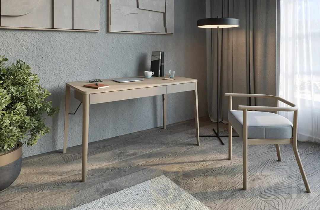 Dein Homeoffice verdient einen Schreibtisch, der Funktionalität mit Eleganz verbindet. Wähle ein Modell, das ergonomischen Komfort und Gesundheitsförderung bietet und gleichzeitig deiner Umgebung sinnlichen Charme verleiht. Robust und sorgfältig verarbeitet wird es nicht nur ein praktisches Möbelstück sein, sondern auch ein Schmuckstück, das dich über Jahre begleiten wird. Der Schreibtisch kann das Herzstück deines Zuhauses werden – ein Ort für Arbeit, kreative Tätigkeiten und Momente der Entspannung, der sich harmonisch in jeden Augenblick deines Tages einfügt.