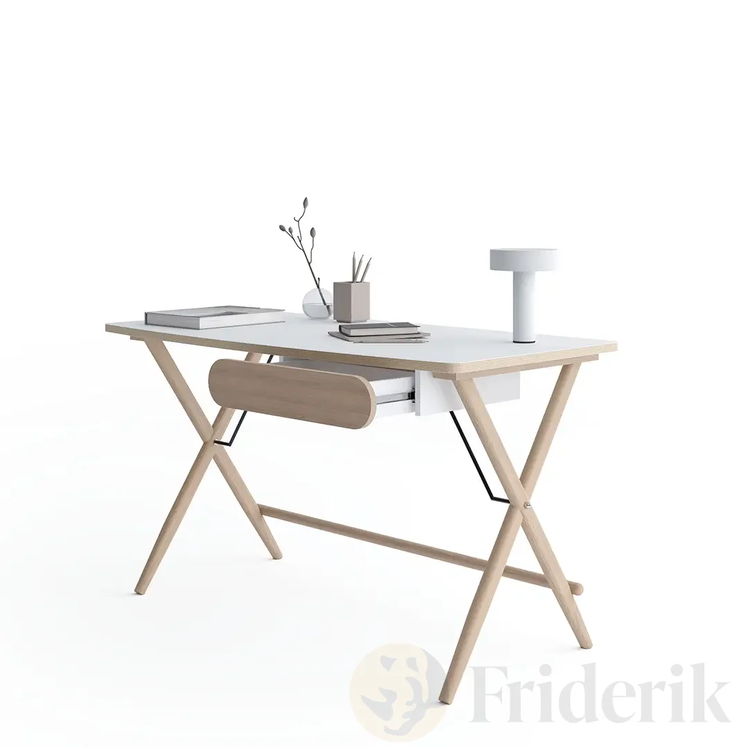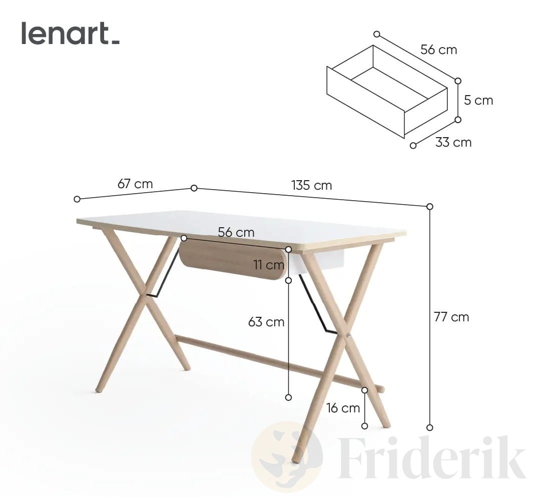Schreibtisch Lenart MATCH MW-01 modernes Möbelstück mit einer Schublade Holzbeine Weiß/helles Eichenholz