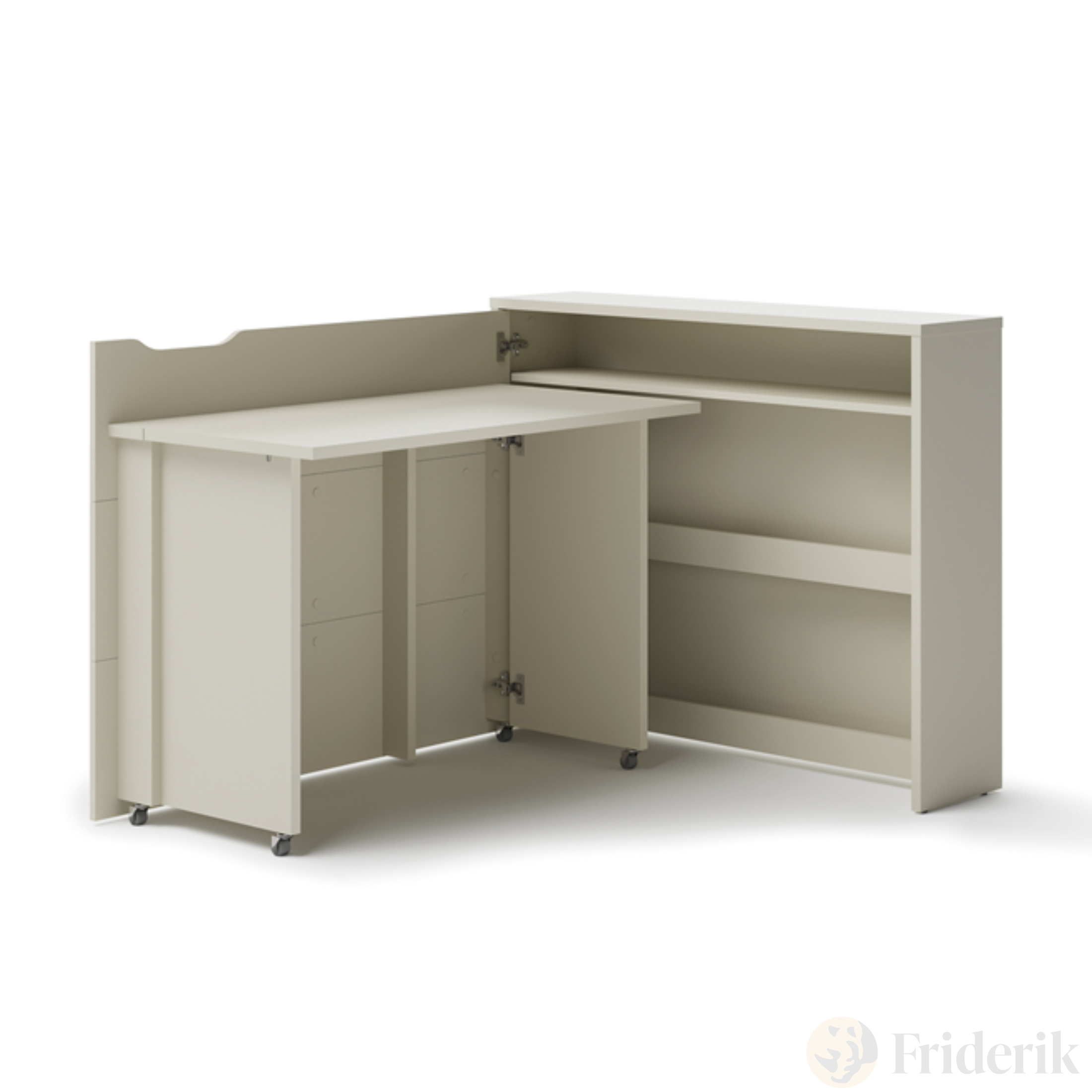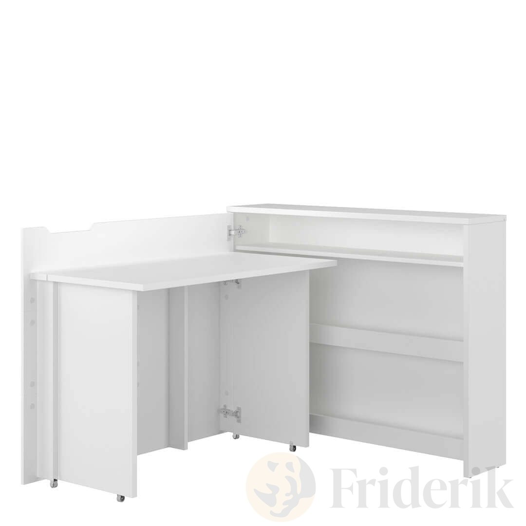 Dieses ausziehbare Schreibtischmöbel bietet maximale Funktionalität bei minimalem Platzbedarf. Ideal für Kinder- oder Jugendzimmer, kleine Wohnungen, Home-Office oder Räume, die von Singles oder Senioren genutzt werden. Dank der Rollen an den Füßen lässt sich der Schreibtisch schnell verschieben und bei Bedarf platzsparend zusammenklappen. Zusammengeklappt wirkt er wie eine elegante Kommode, deren Oberfläche zusätzlich für Dekoration genutzt werden kann.