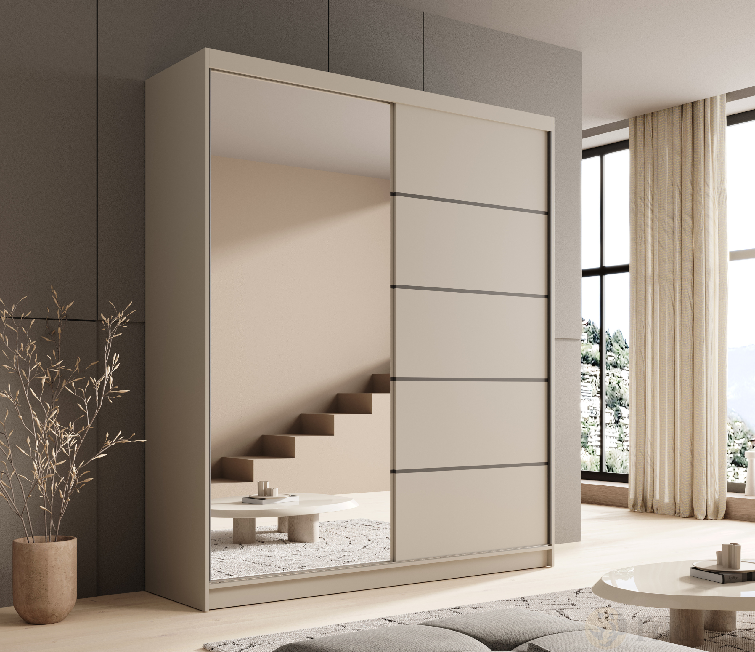 Schwebetürenschrank Nico 180 mit Spiegel – Eleganz und Funktionalität für moderne Wohnräume - Beige, Kaschmir
