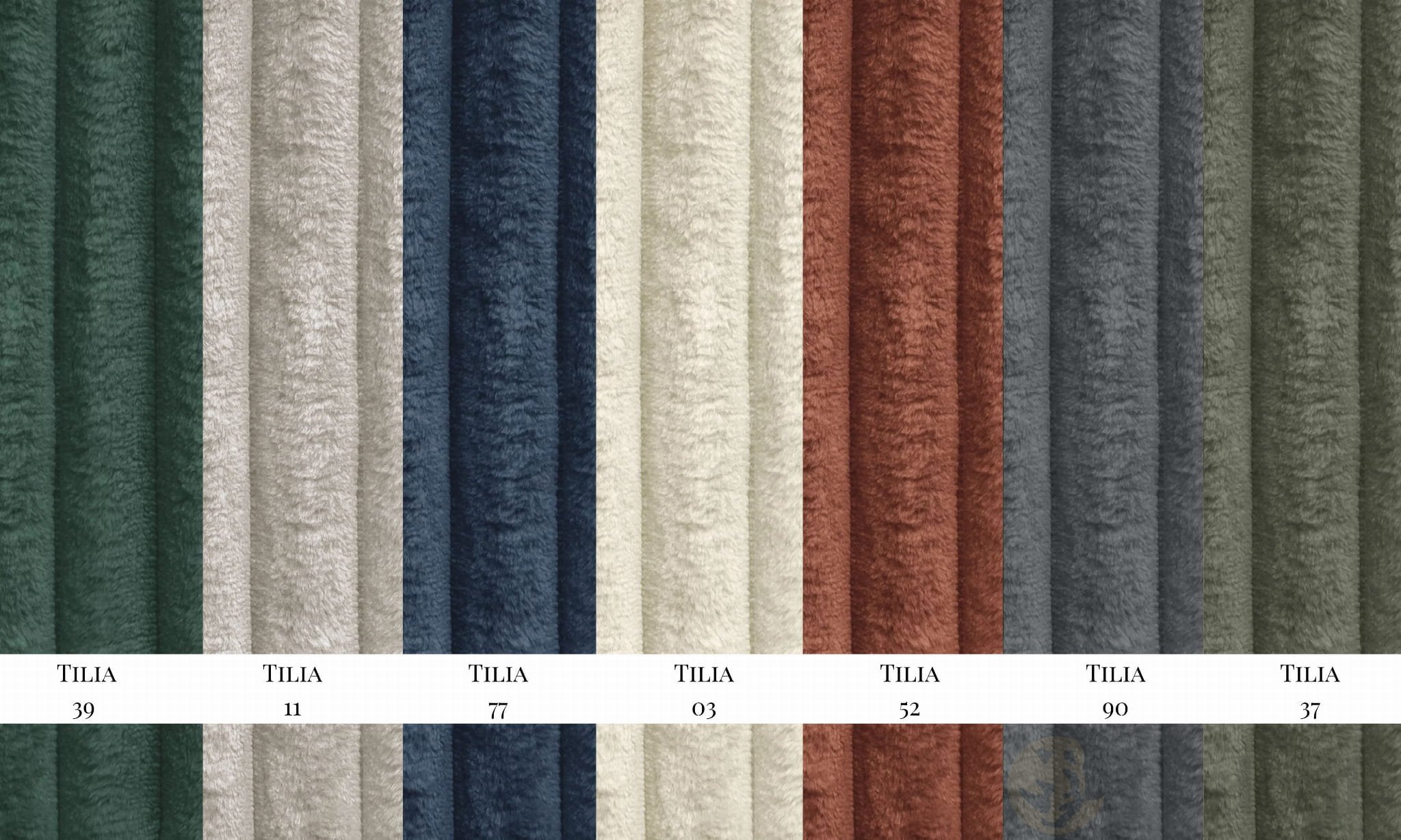 Der TILIA-Stoff ist ein eleganter, dicker Cord mit samtiger Struktur und besonders weicher Haptik. Erhältlich in 15 trendigen Farben, bringt er Wärme, Gemütlichkeit und Stil in Ihr Zuhause.