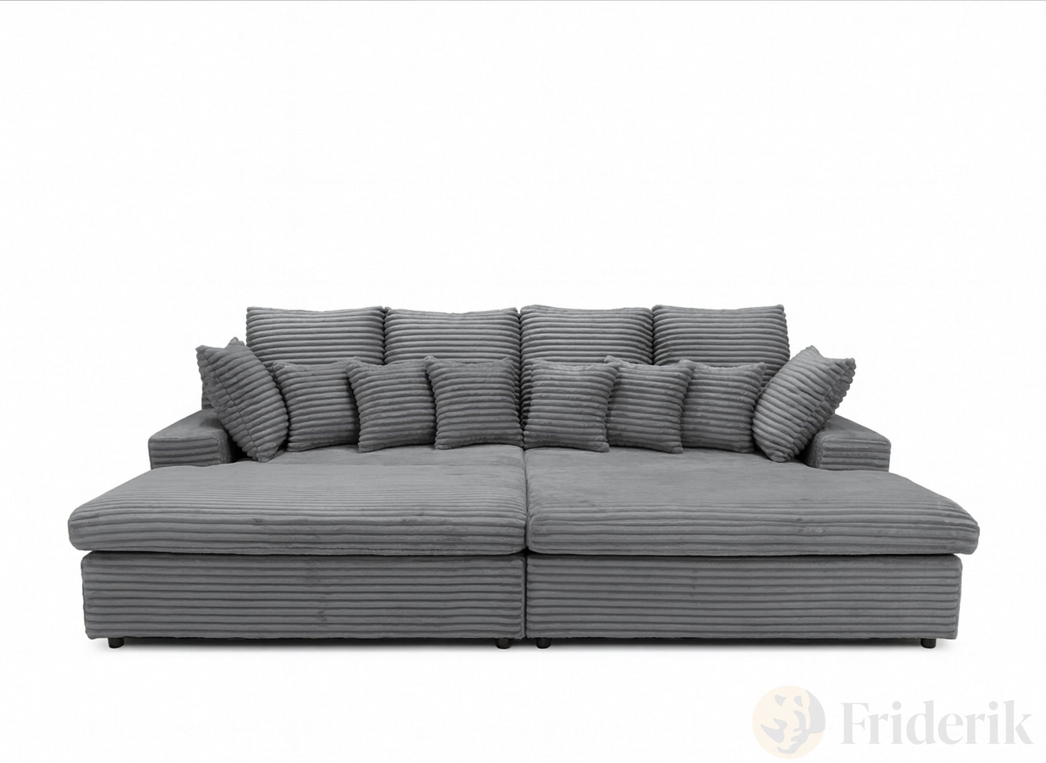 Dieses großzügige, vielseitige Sofa bietet ausreichend Platz für alle Familienmitglieder und lässt sich abends in wenigen Handgriffen in ein bequemes Bett verwandeln. Ideal für geräumige Wohnzimmer, in denen Design und Funktionalität gleichermaßen zählen.