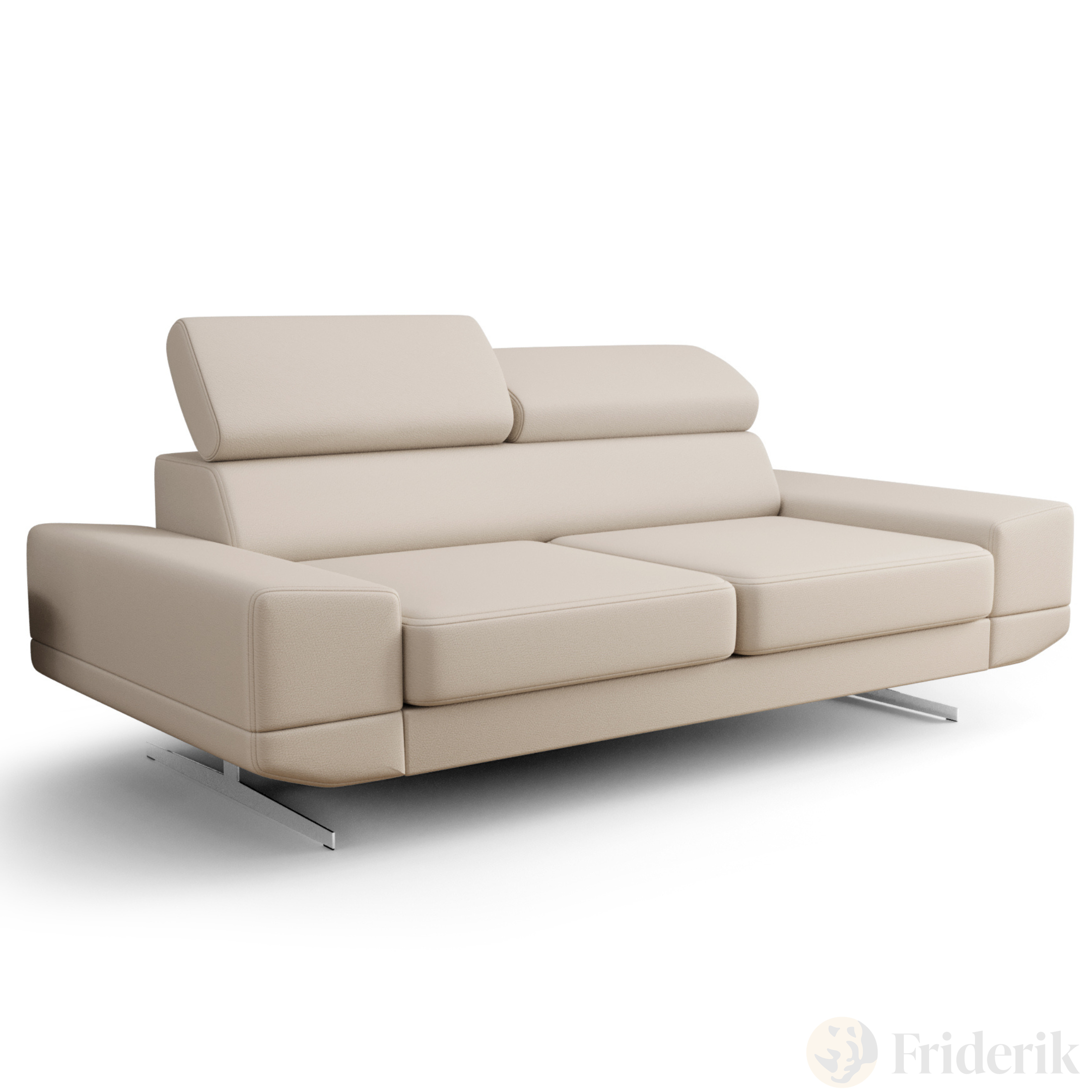 Sofa Milano II 200 cm – Modernes Sofa mit verstellbaren Kopfstützen und Metallfüßen, Echtleder U-8 - Creme