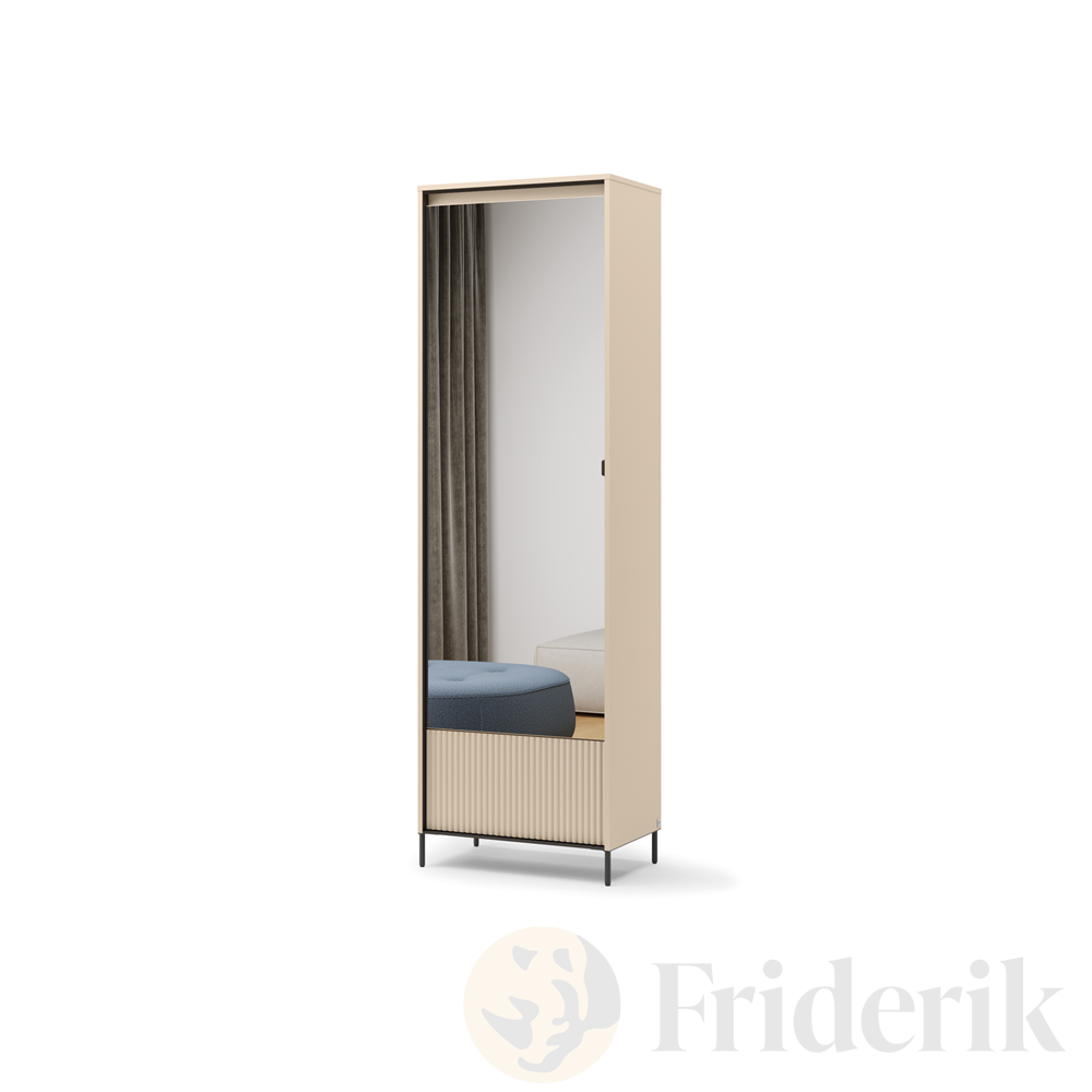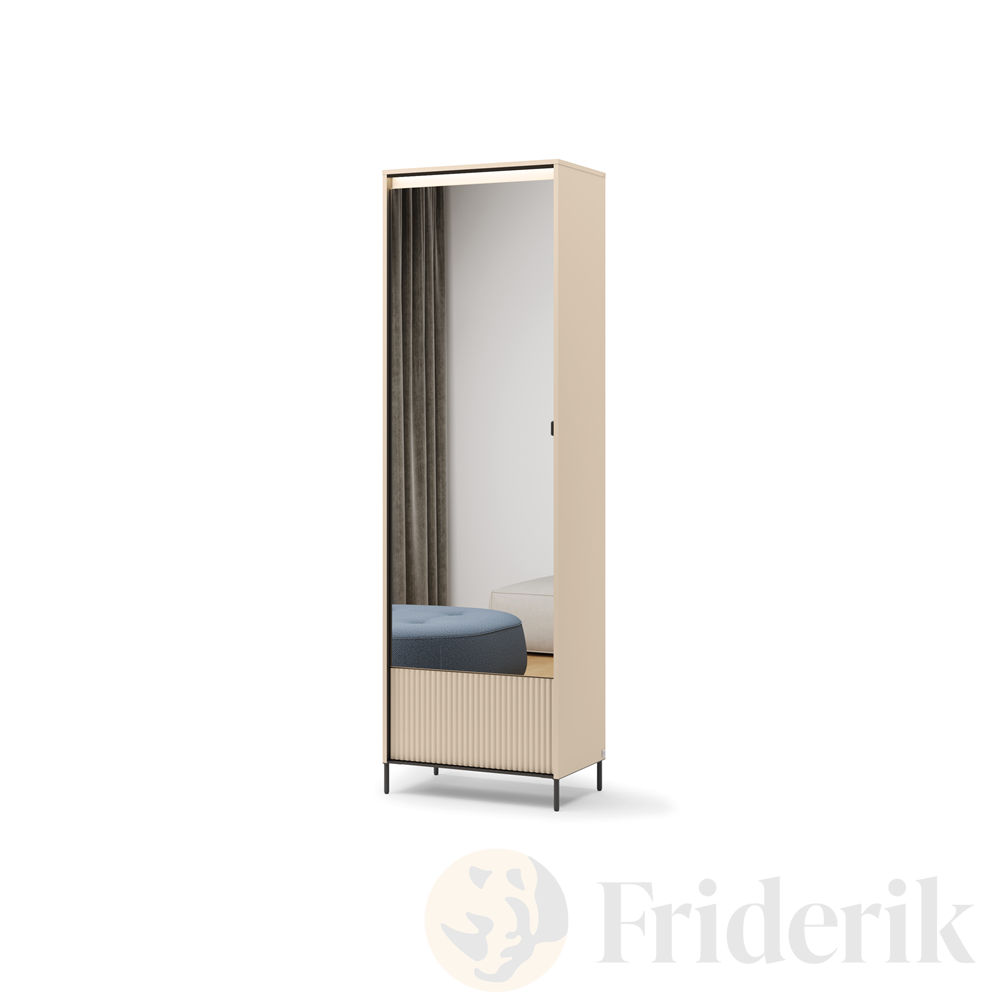 TREND GARDEROBE TG-01 – Schrank mit LED-Beleuchtung, Spiegel & Push-Open-System, Beige Sand