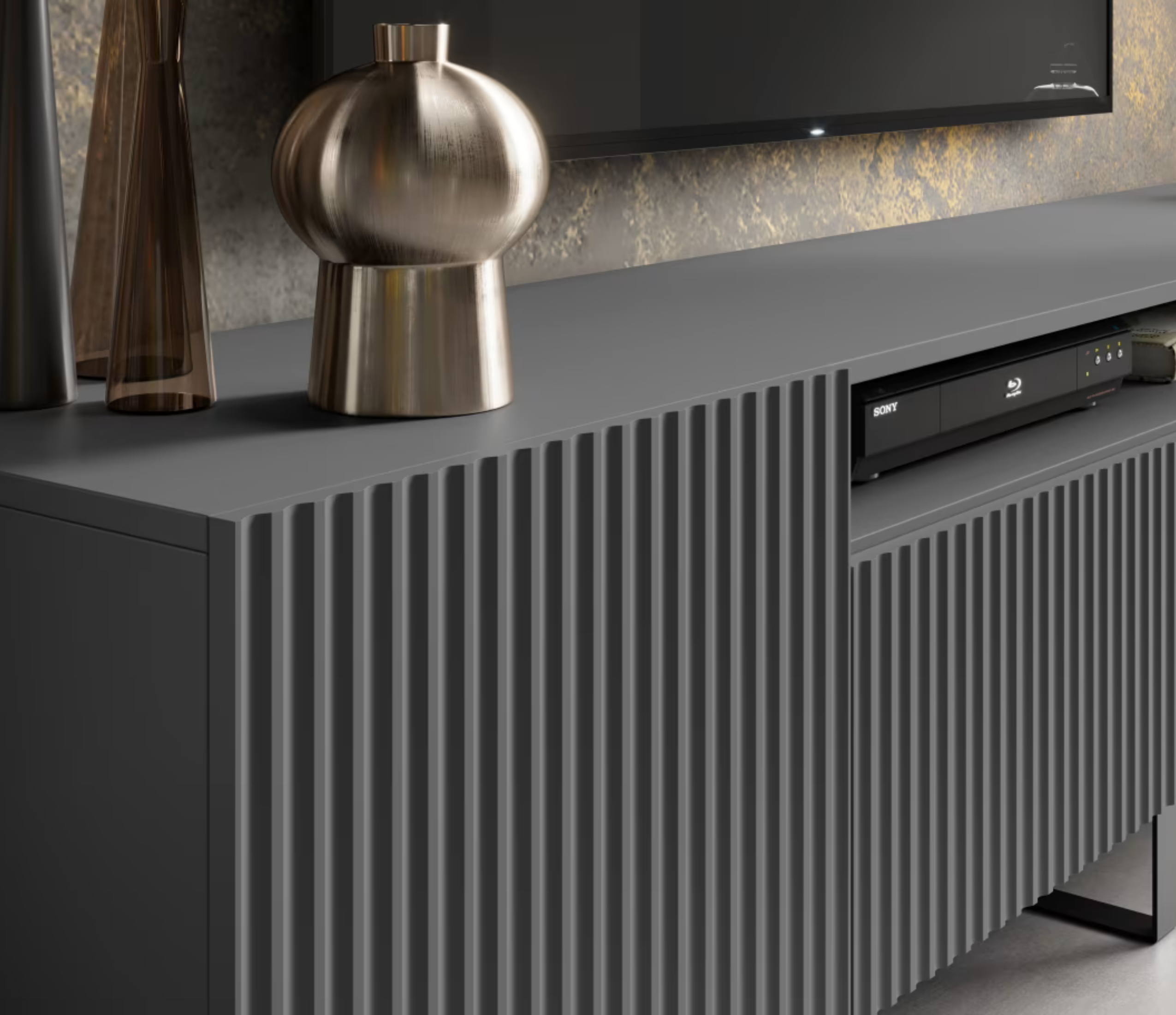 TV-Lowboard NOEMI 200 – Modernes Design mit geriffelter Front - Grau