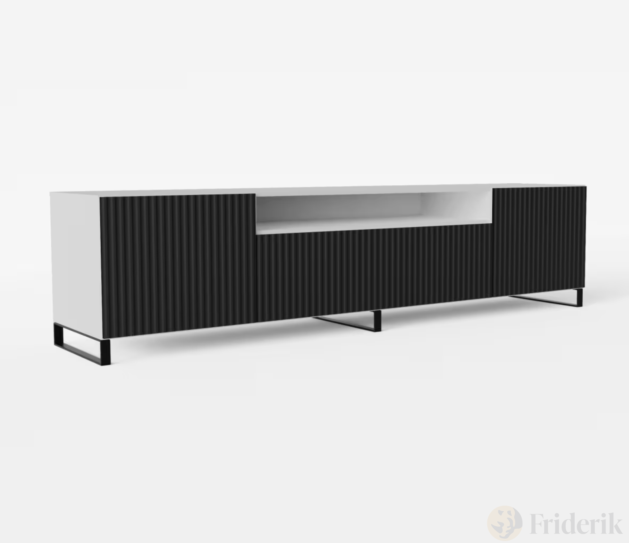 TV-Lowboard NOEMI 200 – Modernes Design mit geriffelter Front - Schwarz/Weiß
