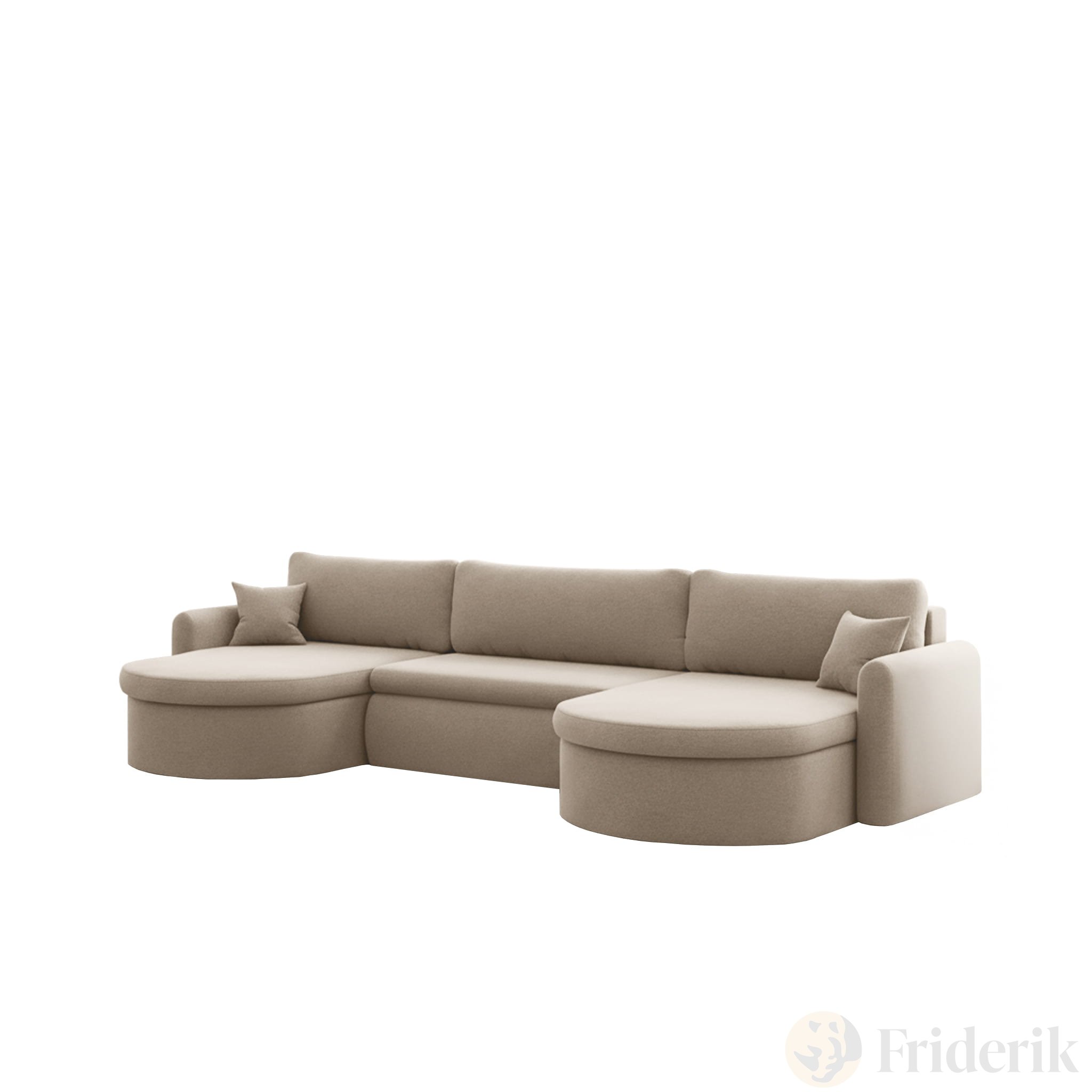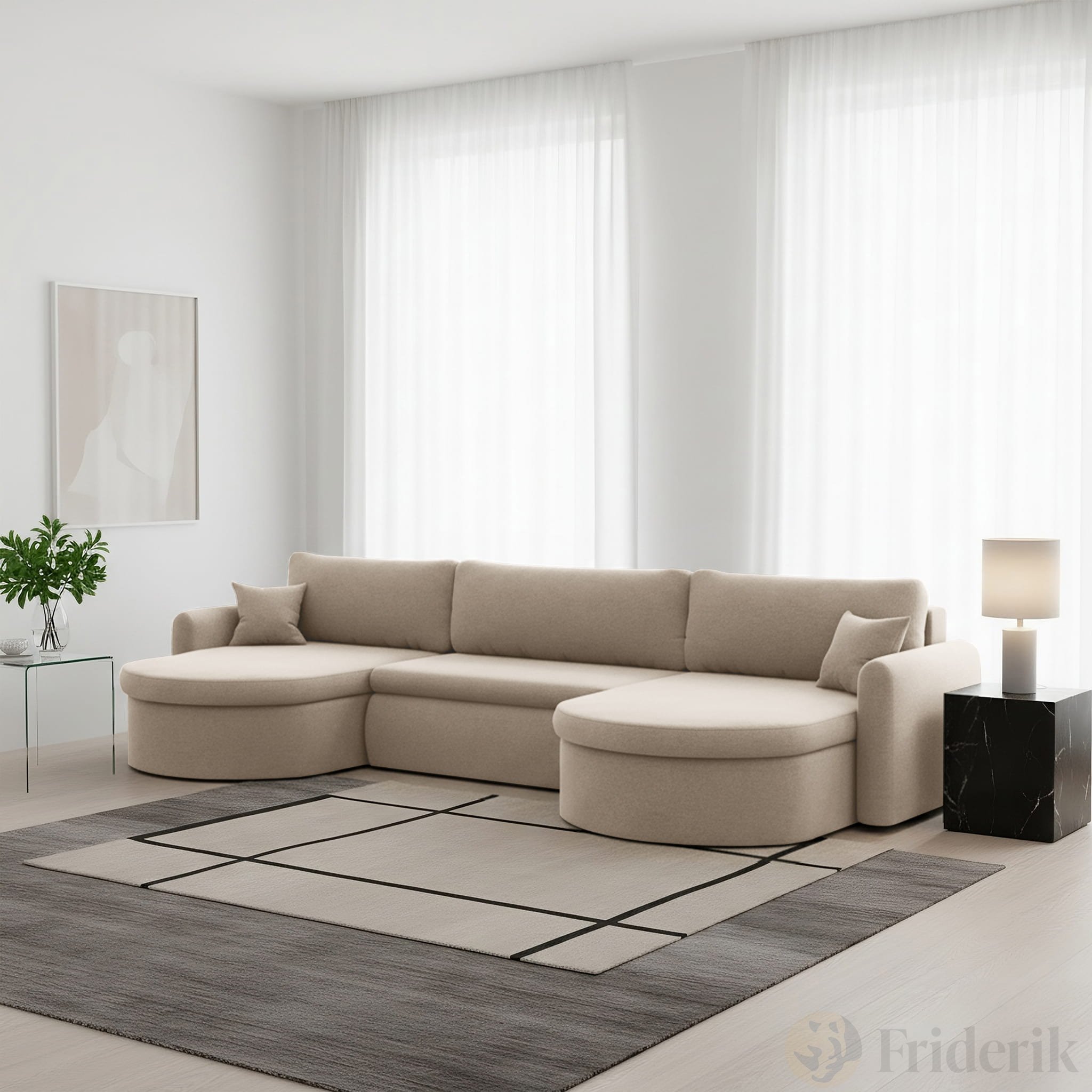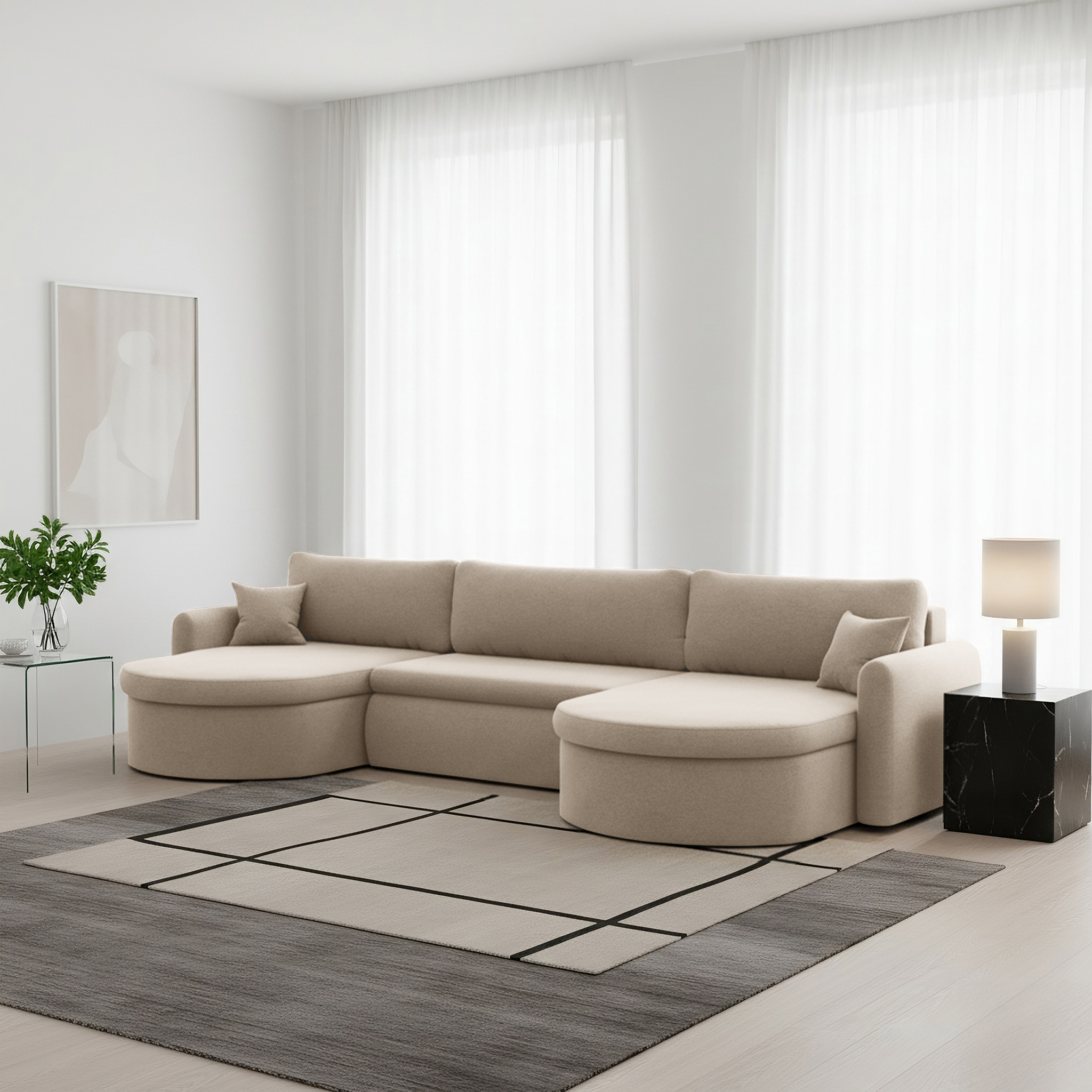 VERONA U Ecksofa mit Schlaffunktion – großes U-Sofa mit Bettkasten, feinem FARO Stoff & höchstem Sitzkomfort - Beige