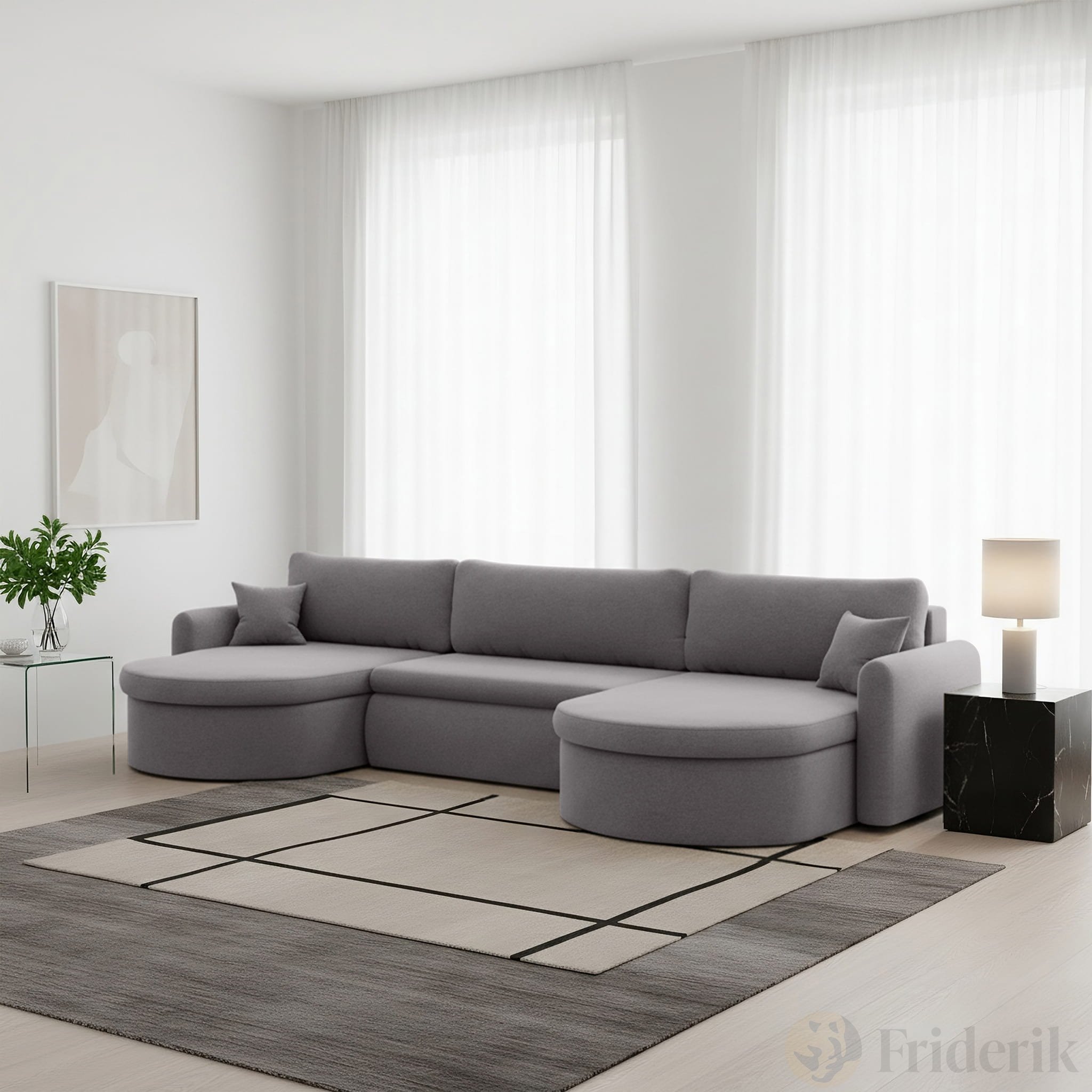 VERONA U Ecksofa mit Schlaffunktion – großes U-Sofa mit Bettkasten, feinem FARO Stoff & höchstem Sitzkomfort - Grau