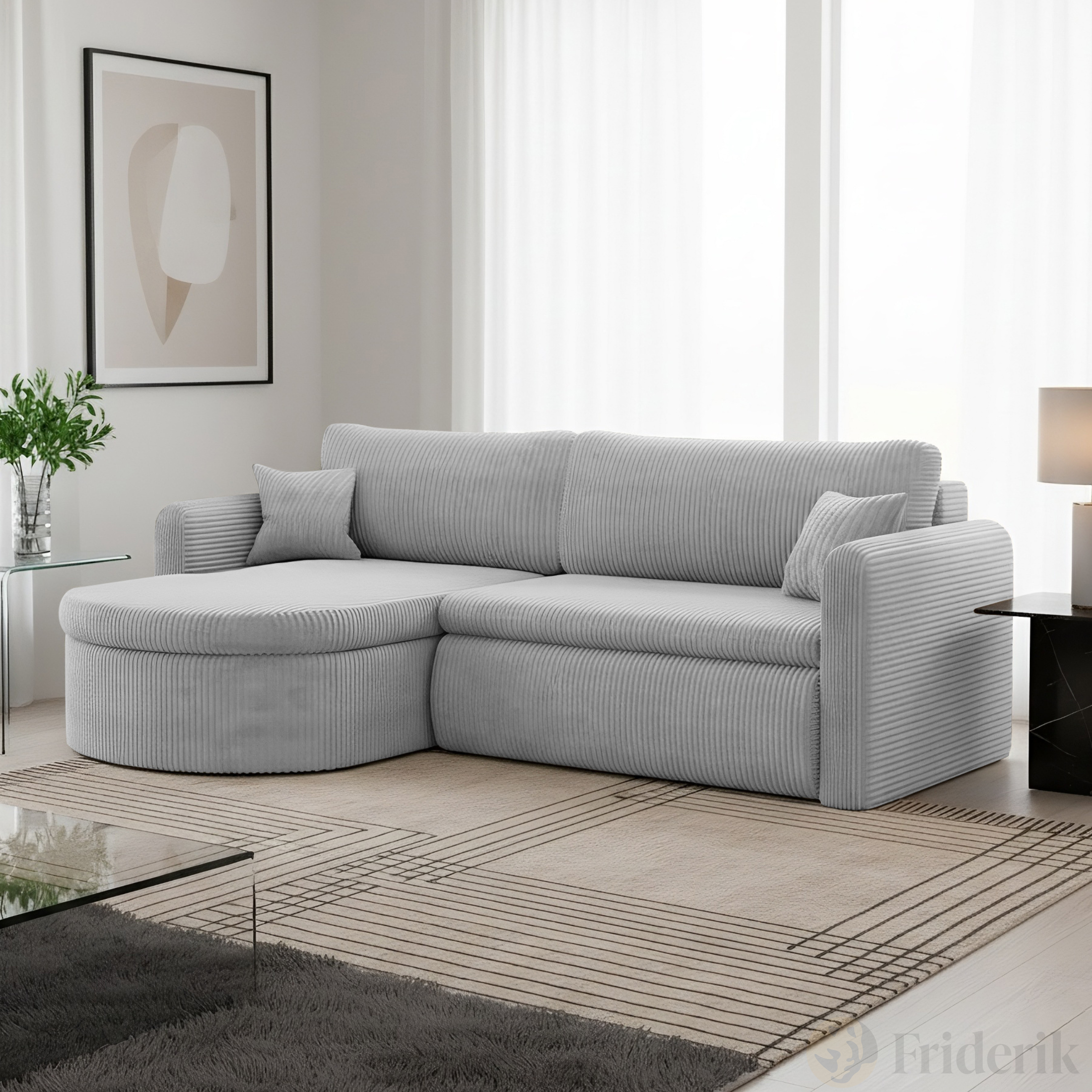 Verona L Ecksofa – Komfortables, freistehendes Wohnzimmer-Sofa mit Schlaffunktion & Bettkasten – Stoff Poso - Hellgrau
