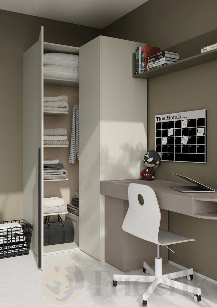Der WOOW WO-08 ist klein, aber unverzichtbar – ein durchdachter Helfer, der den Alltag organisiert und gleichzeitig modern aussieht. In Kombination mit den anderen Möbeln der WOOW-Kollektion entsteht ein harmonisches, funktionales Jugendzimmer mit Stil.
