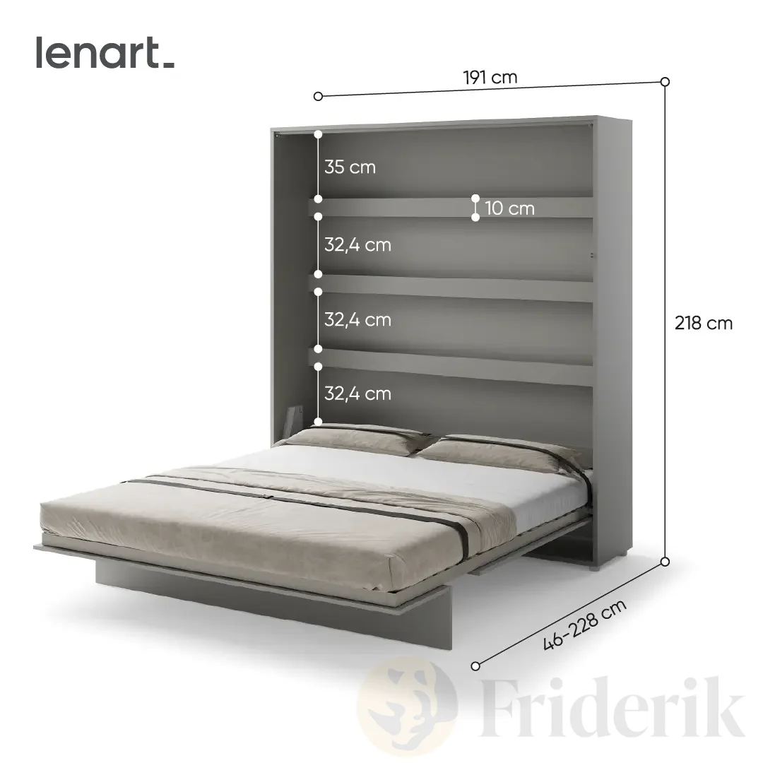 Wandklappbett 180x200 Vertikal Lenart BED CONCEPT Schrankbett Grau BC-13