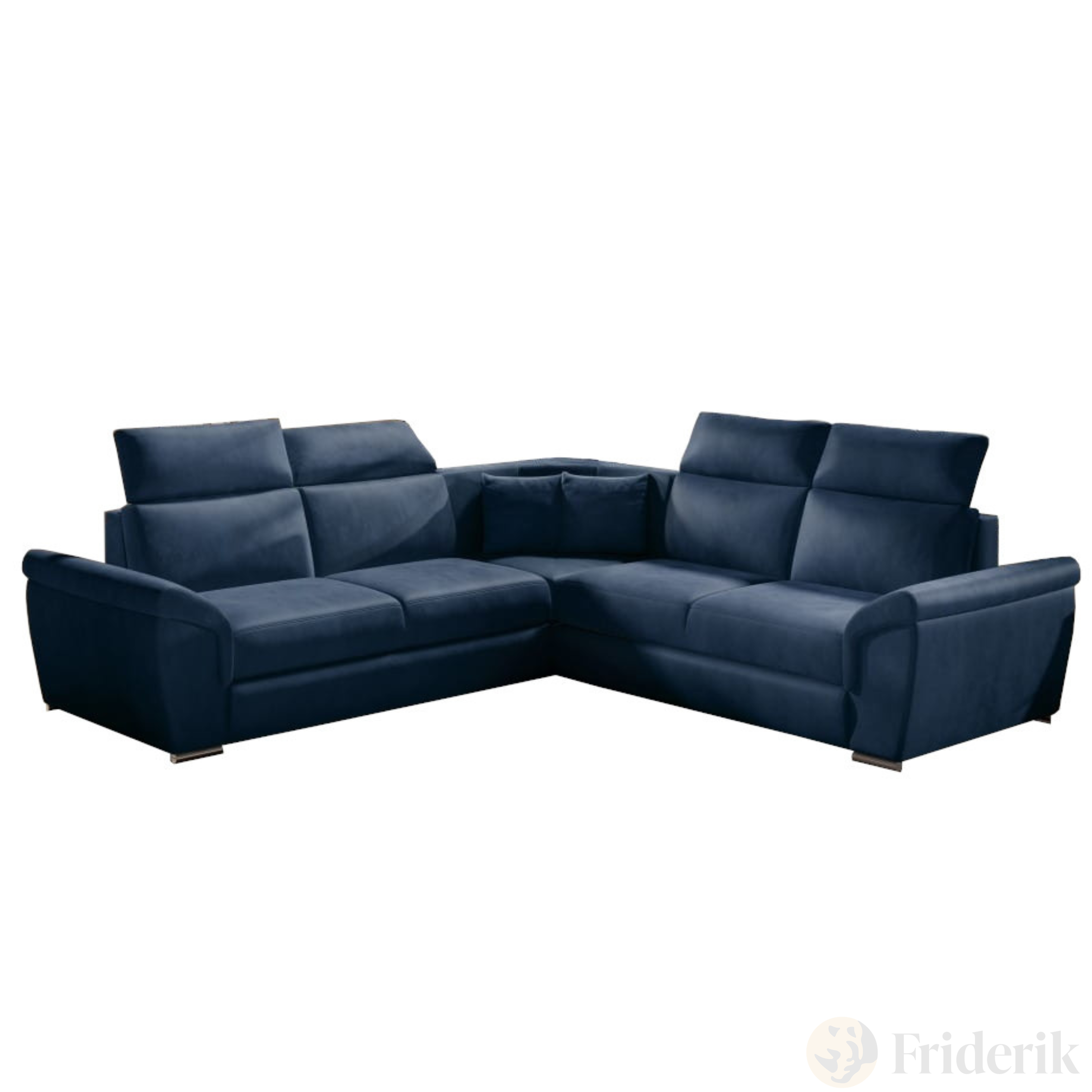 Ecksofa FIDELIA mit Schlaffunktion und Bettkasten Couch Verstellbare Kopfstützen, Dunkelblau